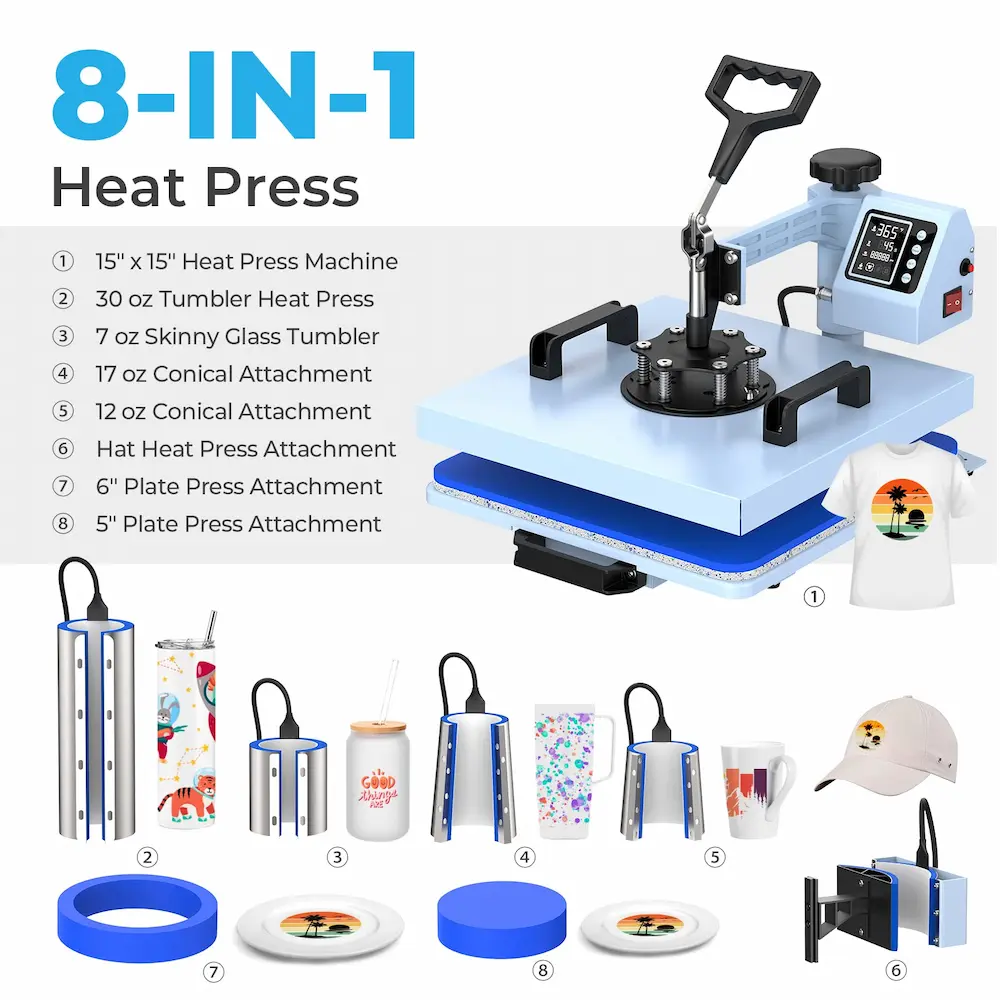 Enjoycolor Pro 15×15 Heat Press with 30 OZ Tumbler Attachment